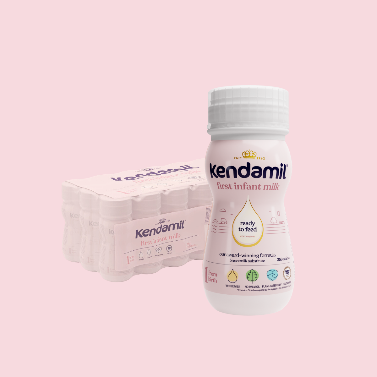Kendamil Ready to Feed First Infant Milk is suitable from birth.