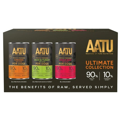 This AATU mixed case offers freshly prepared, handcrafted wet dog food for adult canines. Each recipe is formulated to deliver high nutritional value using premium, ethically sourced ingredients in small batches.