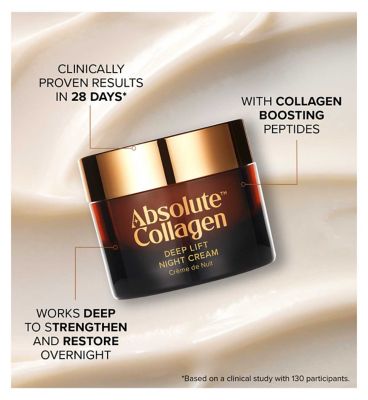 Read MoreAbsolute Collagen Deep Lift Collagen-Boosting Night Cream deeply nourishes as you sleep so you can wake up to smoother, firmer skin.