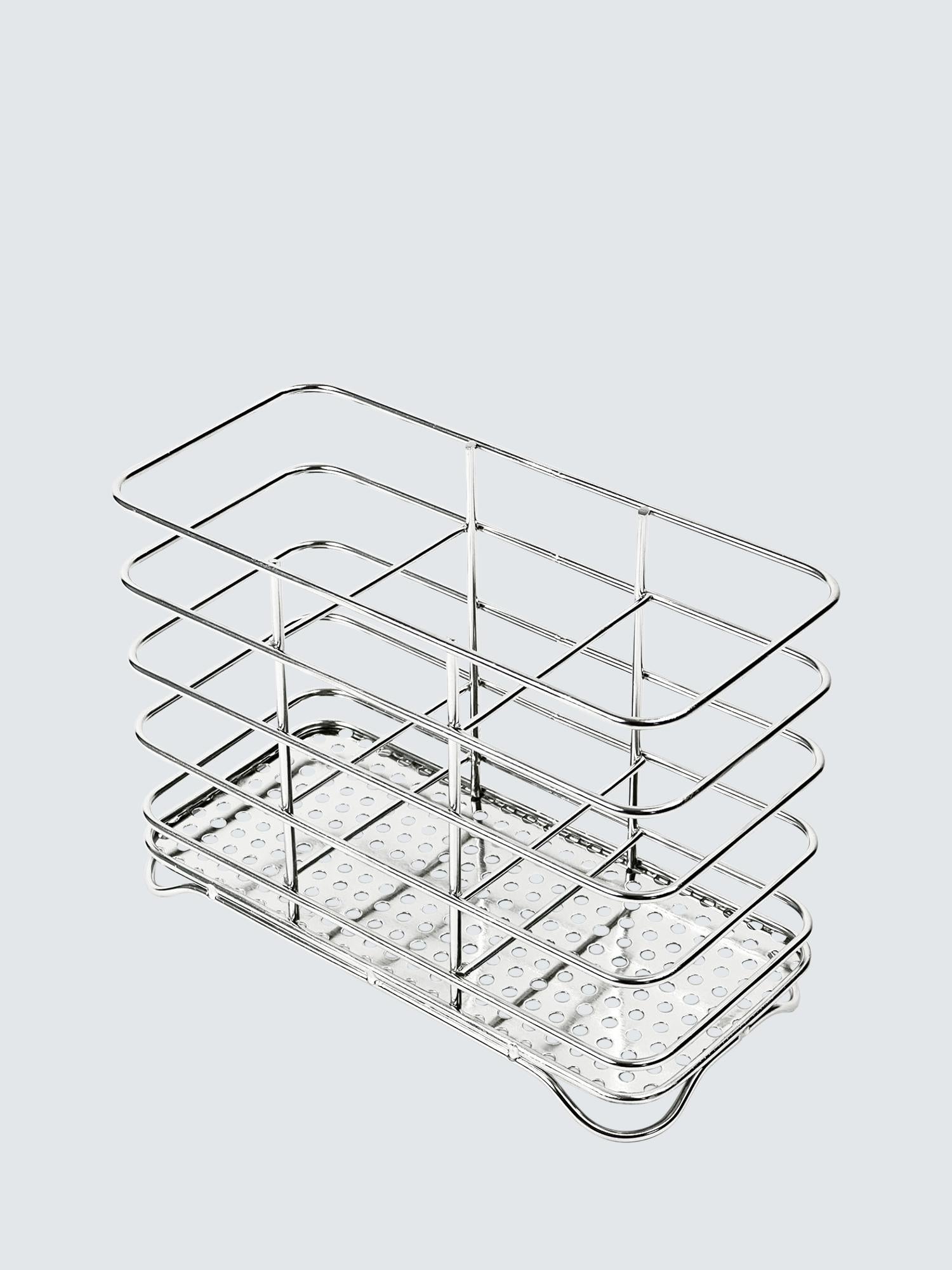 This Addis Stainless Steel Cutlery Drainer ensures effective utensil organisation post-wash. It features three specific compartments for systematic separation of cutlery items, promoting hygienic and rapid drying. The durable metal construction is ideal for daily kitchen routines and long-term reliability. This essential accessory keeps your sink area completely tidy and functional.