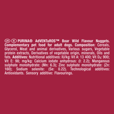 Product InformationBursting with flavour, Purina Adventuros Boar Wild Flavour Nuggets will make adventures with your dog mean more as these mouth-watering treats will put the wild into the wonderful times you enjoy together. The wild adventure comes alive. Try the whole range today. Purina® Adventuros⢠Boar Wild Flavour Nuggets. The wild adventure comes alive.