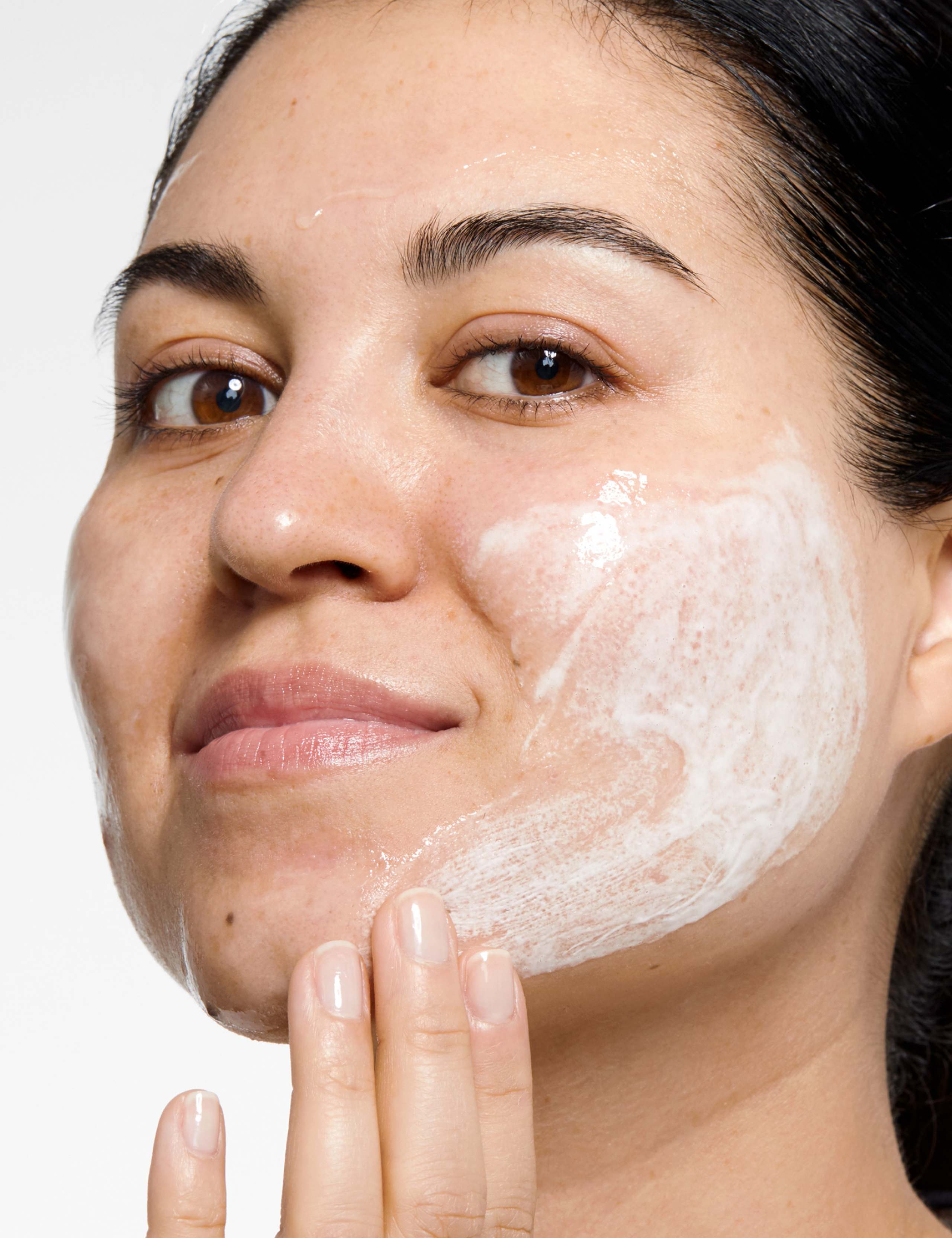 Massage over makeup-free face and neck
