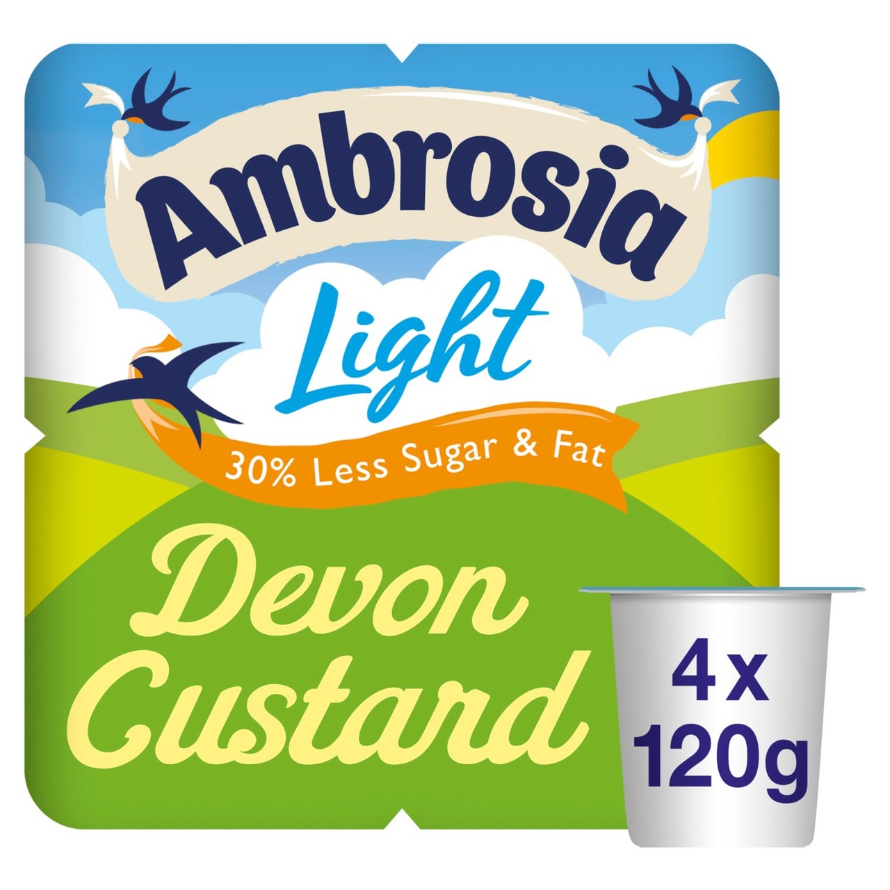The same smooth and creamy taste of Ambrosia Devon Custard Pots, now in a lighter version. Our Light Devon Custard Pots have 30% less sugar and 30% less fat than the standard Devon Custard with the same delicious flavour, great if you fancy a lighter sweet treat. Made with West Country milk, this custard is a source of calcium. It has 100% natural favours with no artificial colours or preservatives, too. The pots are individually portioned and don't need to be kept chilled, so they're perfect for popping in lunchboxes, savouring as a sweet snack or enjoying as a time-saving dessert. They're lovely hot or cold, and they're easy to heat up in the microwave. Just remove the entire foil lid, heat on full power for 30 seconds, then leave to stand for a minute before stirring and digging in. At Ambrosia, we put all our love into creating delicious puddings to satisfy the whole family and bring a taste of Devon to your home.