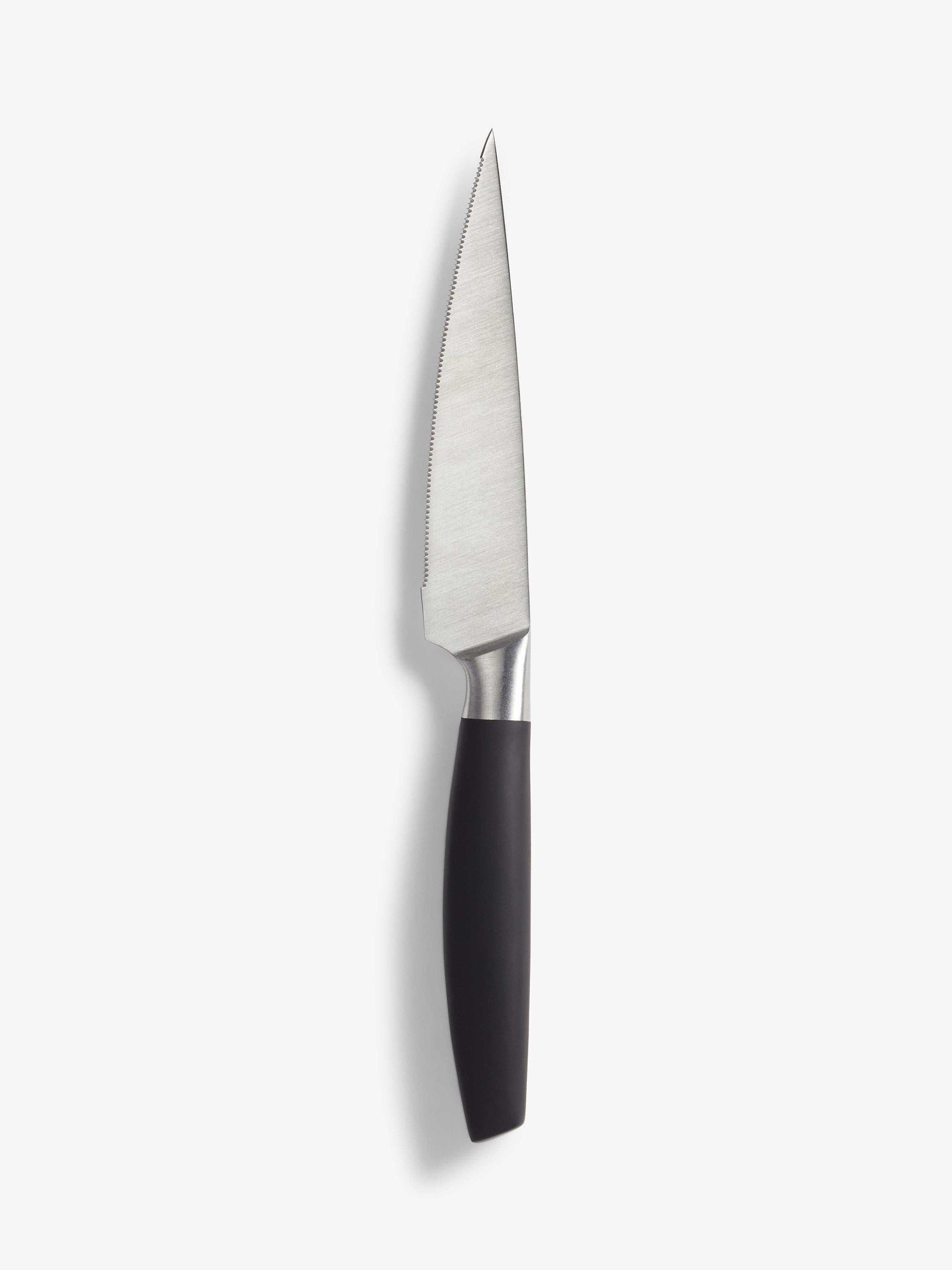 Read MoreContemporary serrated utility knife with a soft-touch coating on the ergonomic handle, for a comfortable grip and use. Created from fully forged, full-tang stainless steel making it strong and durable.
