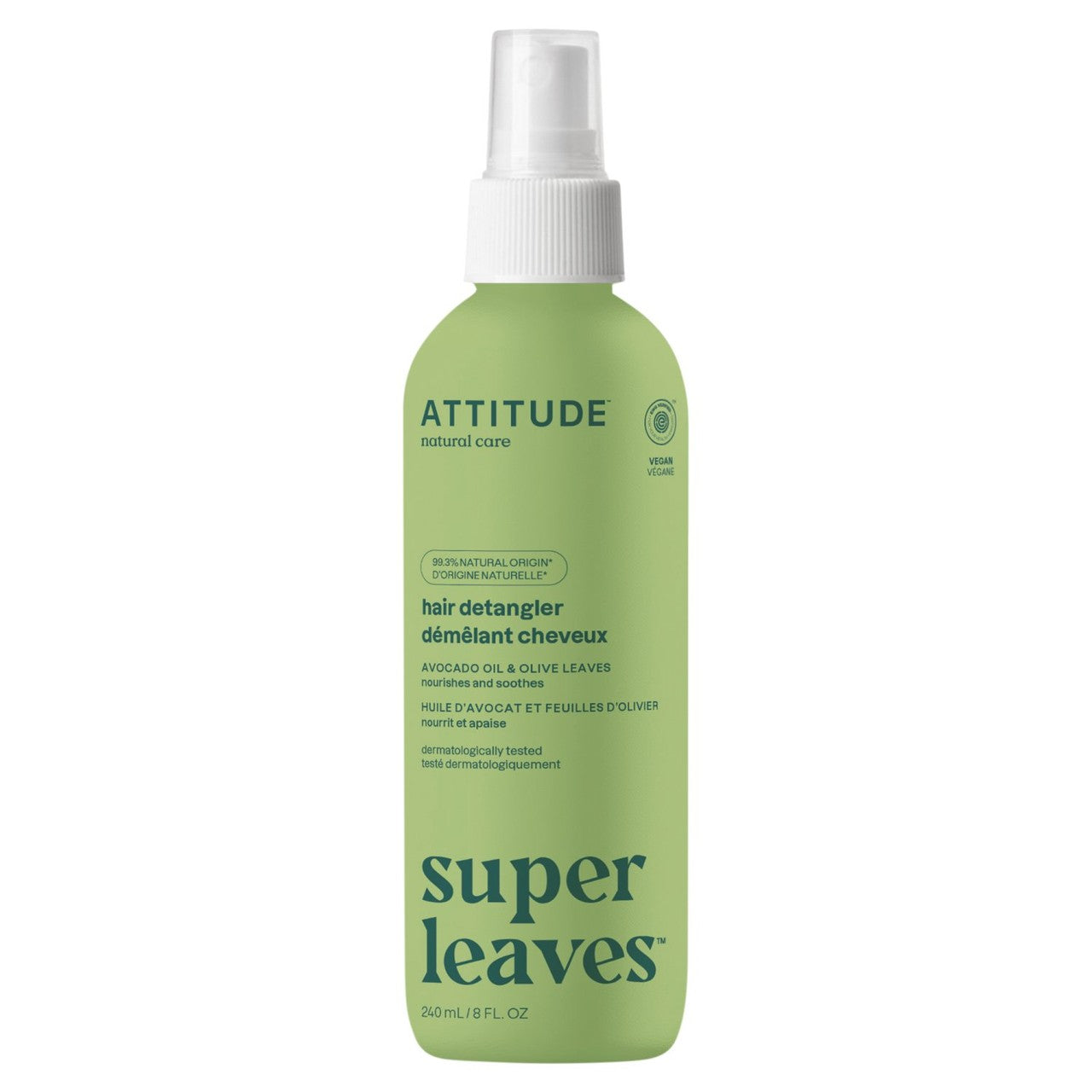 This ATTITUDE Super Leaves product is formulated to assist with combing and scalp comfort. It meets a high standard for natural content, ensuring 99.3% of ingredients originate from natural sources, compliant with ISO 16128. The inclusion of olive leaf extract works to improve the condition of the scalp tissue.