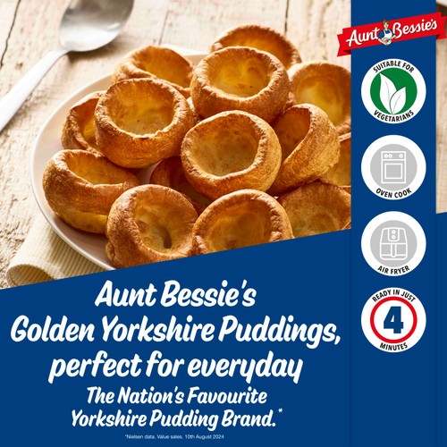Aunt Bessie's Golden Yorkshires are an essential component for a complete roast dinner experience. These items are supplied frozen for convenient storage until you are ready to serve. Simply heat them in the oven whilst preparing your main course for ideal results.