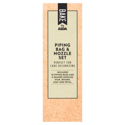 Includes 10 disposable piping bags and 4 shaped nozzles. Star, round, leaf and petal.