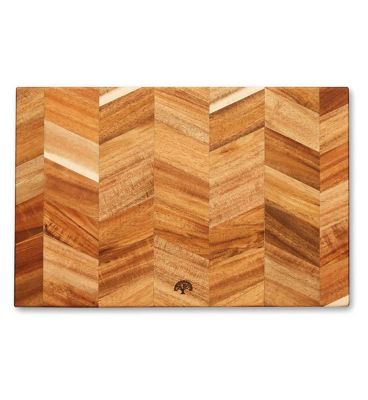 The Barbary Oak Rectangle Chopping Board showcases a distinctive chevron pattern built from robust acacia wood. This substantial wooden chopping board provides a durable and attractive surface for various food preparation tasks in your kitchen. Its solid construction ensures it holds up well under regular use, offering reliable performance.