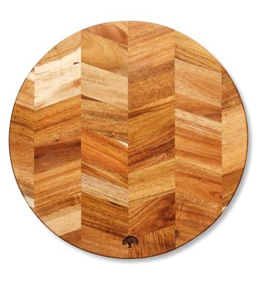 This Barbary Oak round board is crafted from durable Acacia wood, featuring a striking visual design for your kitchen. The contrasting grain pieces are arranged in an intricate herringbone pattern, adding texture and sophistication to any preparation area. This board offers versatile functionality, moving seamlessly from daily chopping tasks to elegant food presentation. Its solid wood construction ensures reliable performance and a lasting addition to your home accessories.