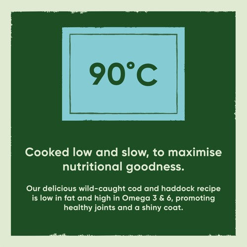 This Beco recipe features wild-caught cod and haddock, offering a healthy and ethical source of protein for your dog. It is specifically formulated as a low-fat option, making it suitable for dogs needing joint support or those in their senior years. The complete recipe balances fish with vegetables and superfoods for balanced nutrition.