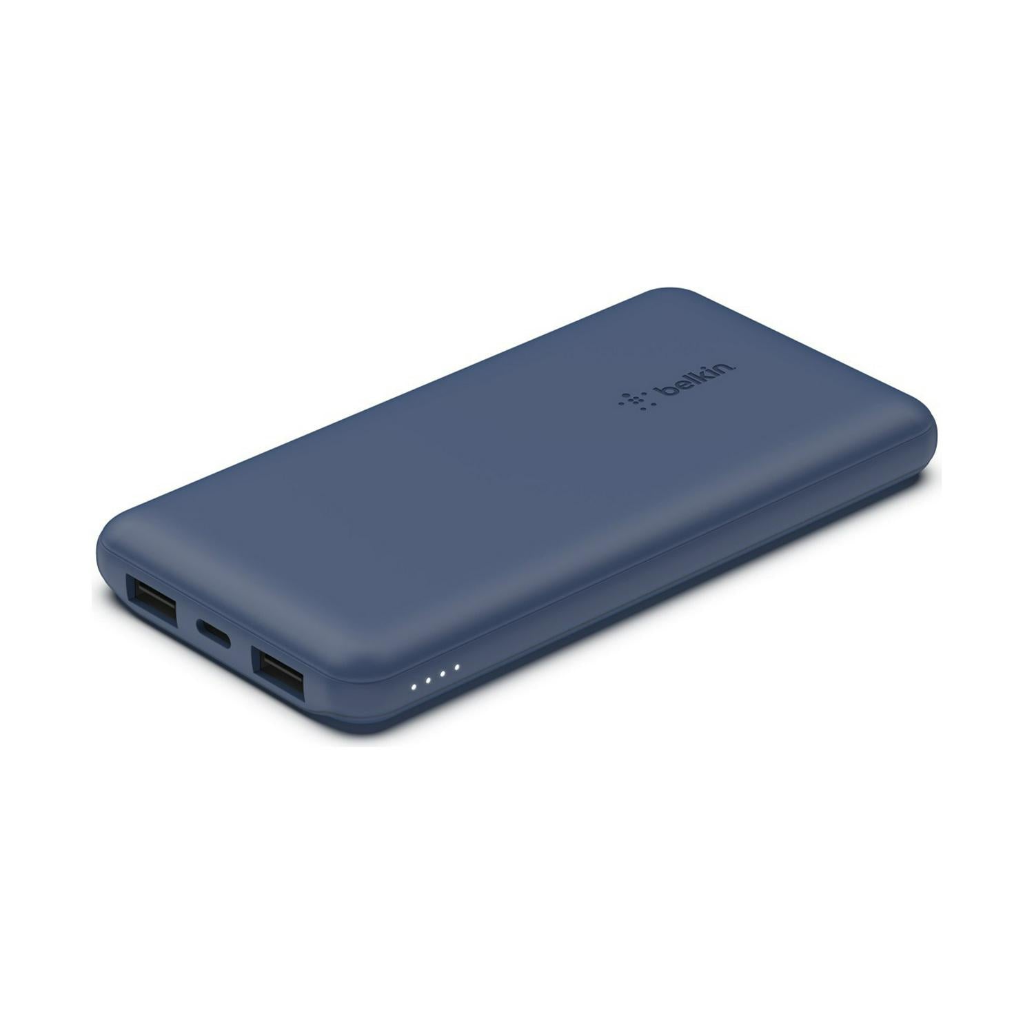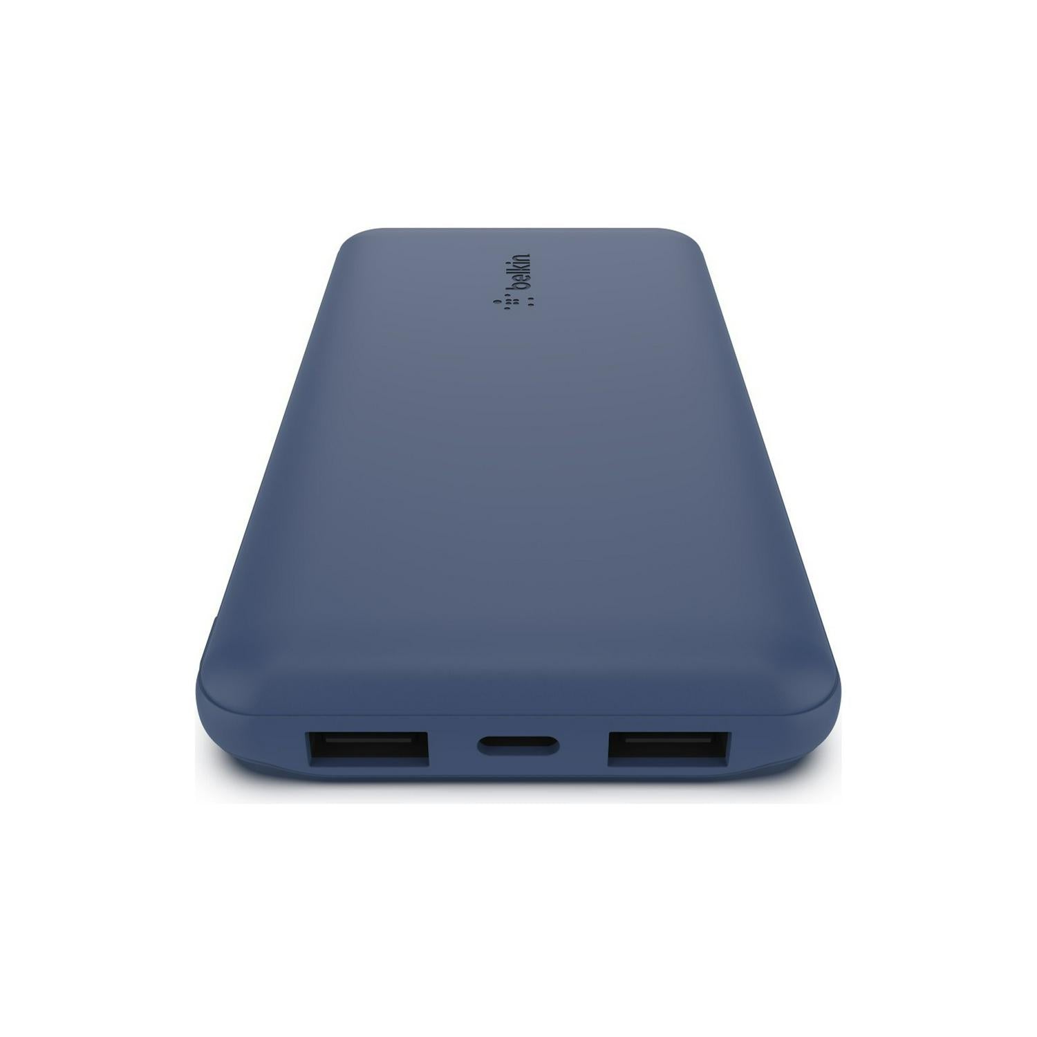Read MoreBelkin Boost Charge Portable Power Bank - Blue Charge 3 devices at once, two USB-A ports and one USB-C port keep all your devices charged, providing up to 15W of power for your smartphone and two other accessories. Charge at up to 15W when using all 3 ports. Binge watch movies, take video calls, and keep your navigation apps running all the way to your destination. An LED light indicates when the power bank needs recharging, and the included USB-A to USB-C cable lets you start charging right out of the box.