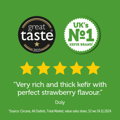 IngredientsPasteurised Cow's Milk (88%) Fermented with Live Kefir Cultures† , Strawberry Puree (4%) , Fruit Extract (Apple, Carob, Grape) , Elderflower Extract , Stabiliser (Pectin) , Lemon Concentrate , Natural Flavouring , † Includes: Bifidobacterium, Lactobacillus Acidophilus, Lactobacillus Casei, Lactobacillus Rhamnosus .