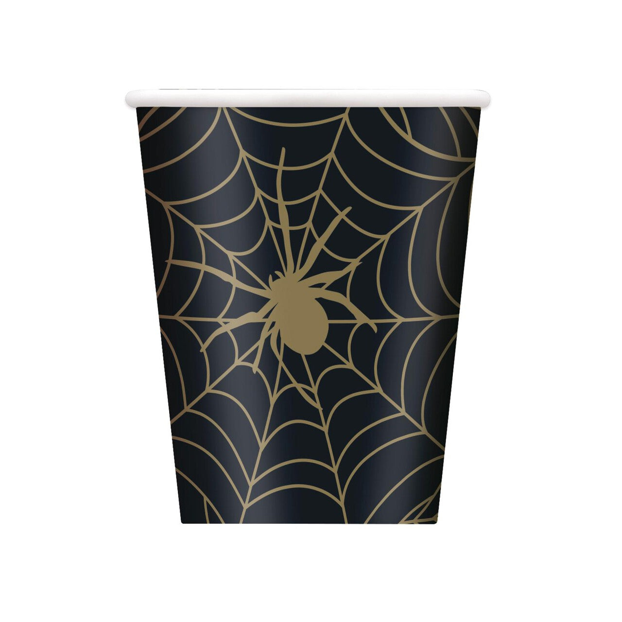 • Pack of 8 Black & Gold Spider Web Halloween Party Cups