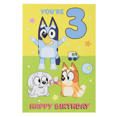 Bluey 3rd Birthday Card - Square Card & Envelope