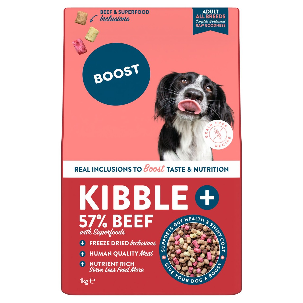 This Boost Kibble Plus formula combines premium grain free kibble with added freeze dried beef and superfood inclusions. This ensures maximum taste and comprehensive nutrition for your dog. The carefully selected ingredients support overall wellness from digestion to coat health.