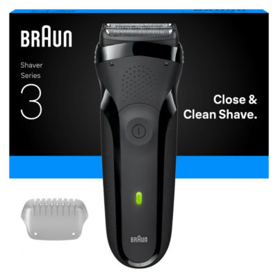 Product InformationThe Braun Series 3 rechargeable electric razor is efficient in one stroke and gentle on skin. The three pressure sensitive shaving elements adapt perfectly to every facial contour and shave in intuitive straight lines. Designed and engineered in Germany, the Braun Series 3 razors for men are built to last.Box includes:1 x Electric shaver1 x Protective cap1 x SmartPlug