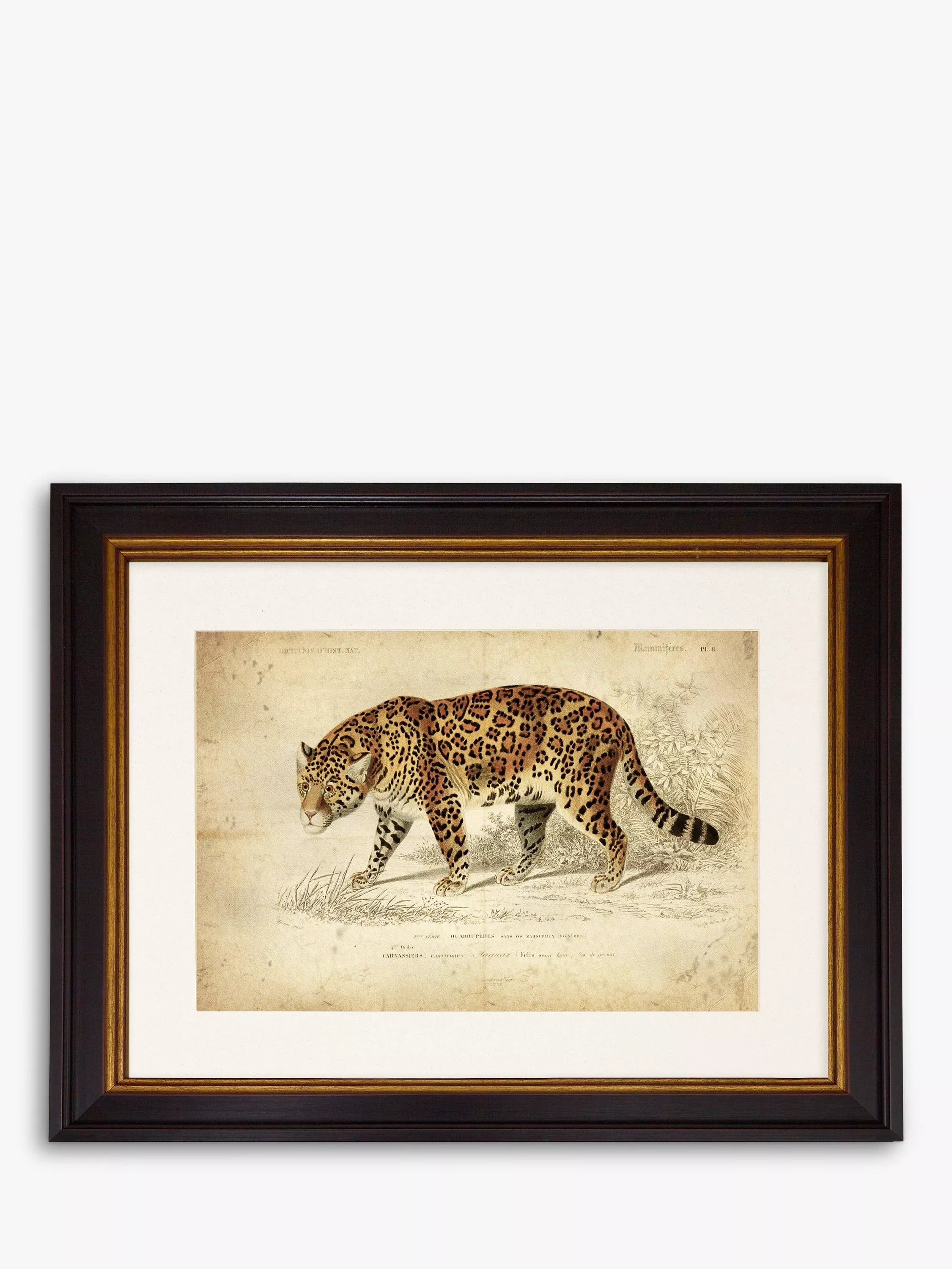 Bring a touch of the wild into your home with this stunning framed jaguar print. This captivating artwork adds a touch of vintage elegance to any room. Perfect for animal lovers and interior design enthusiasts alike.