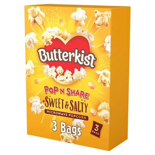 Prepare for movie night with this Butterkist Sweet & Salted microwave popcorn offering. This snack delivers a wonderfully warm flavour that perfectly balances sweetness and saltiness for group enjoyment. It is made using natural whole grains, ensuring a quality base for your treat. Note that individual bag volume may vary because popped corn takes on various shapes and sizes. However, you can be assured there is always plenty provided for sharing.