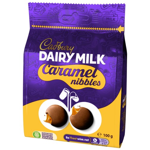 Enjoy the classic taste of Cadbury with these Caramel Nibbles, ideal for satisfying immediate sweet cravings. Each piece features rich milk chocolate encasing a smooth, soft caramel centre for a delightful texture. This 100g pack offers a reliably satisfying confectionery experience.