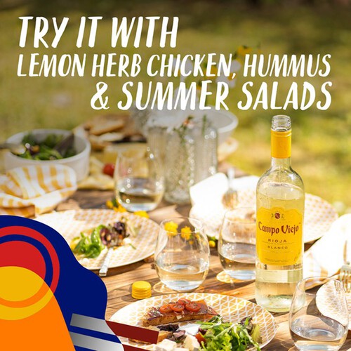 A fruit-driven and crisp 2020 white wine from the most renowned Spanish wine region Rioja, crafted by the leading winery Campo Viejo. Pairs perfectly with lemon and herb chicken breast, seafood, goats cheese, creamy pasta, summer salads and tofu & veggie stir fry. A great wine for aperitif moments and dinners with friends. Best served at 8-10°C.