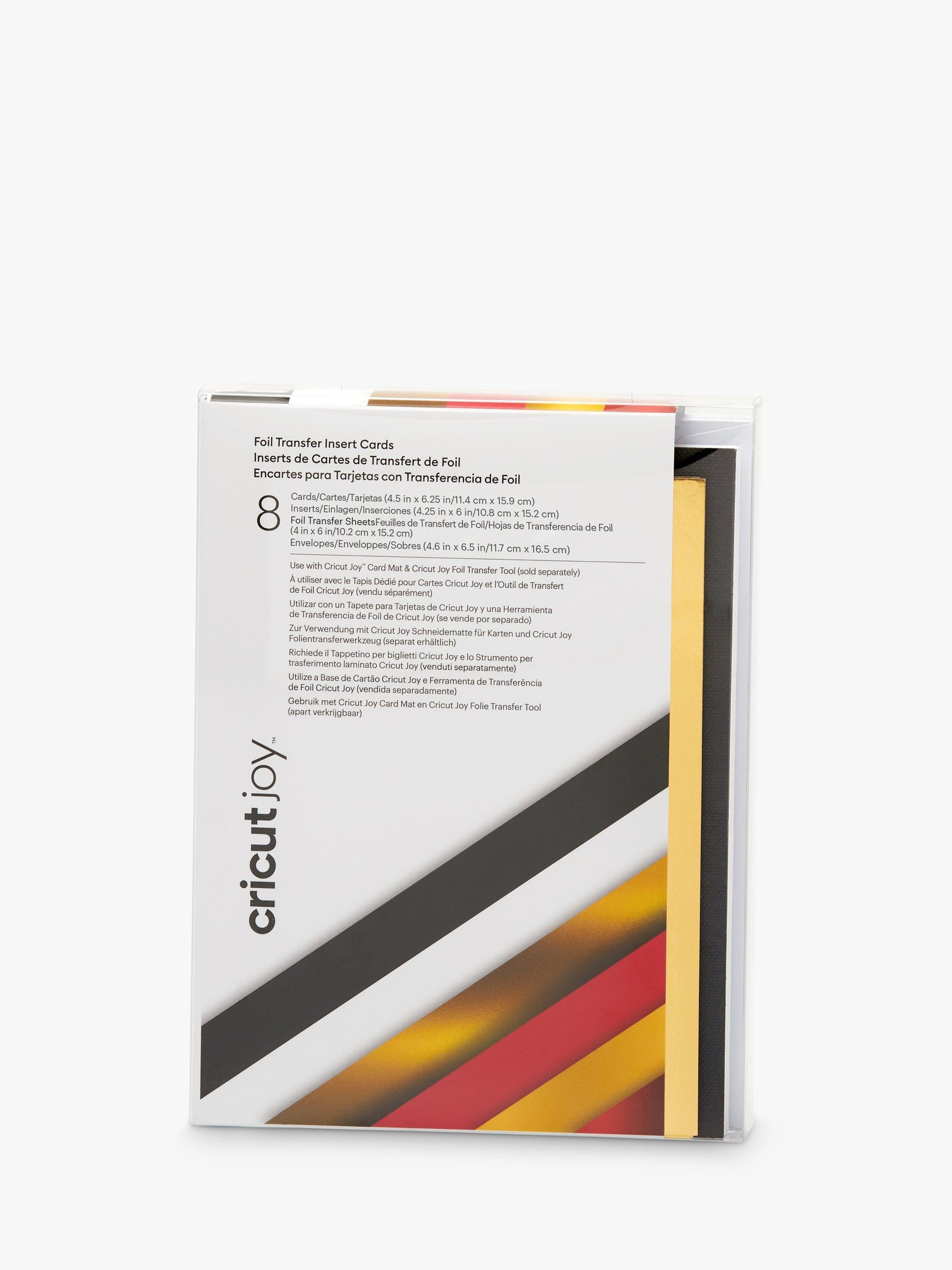 Read MoreCreate meaningful greeting cards that shine in no time with Foil Transfer Insert Cards for your Cricut cutting machine. This ingenious glue-free design allows for two-tone, depth-filled cards without the hassle or mess of glue. Each cut will reveal the hue of the insert inside. Add amazing shimmer and shine to your card designs with included Foil Transfer Sheets. This set includes envelopes and comes in a variety of colours to please every card recipient on your list!