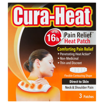 Product InformationUp to 16h Pain Relief* Heat Patch Penetrating Heat Action* * Cura-Heat's penetrating heat action lasts for 8 hours and once removed the pain relief can continue for a further 8 hours, resulting in up to 16 hours pain relief. Cura-Heat Direct to Skin Neck & Shoulder Pain can be applied directly to the skin for those who prefer direct skin application heat therapy. Simply open the sachet and apply directly to the skin over the painful area where the heat radiates through to the source of pain - decreasing stiffness, improving mobility and relaxing tense/aching muscles. Non-medicinal, fragrance-free, and with a thin and discreet design, Cura-Heat Direct to Skin Neck and Shoulder Pain provides a convenient way to manage your neck and shoulder pain.