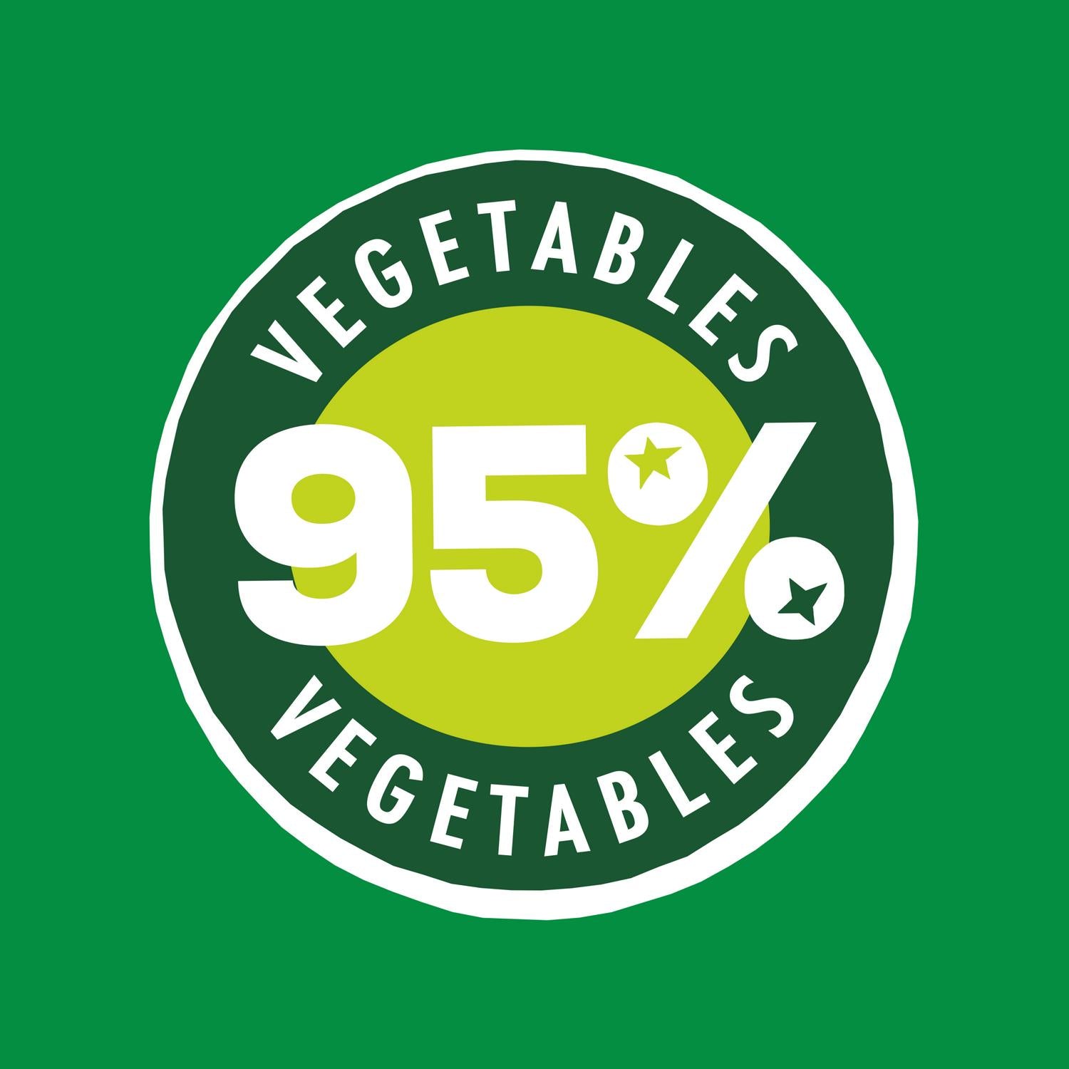 Enjoy bold flavours with 95% vegetables, delivering 1 of your 5 a day recommended intake of fruit and vegetables, as advised by nutritionists