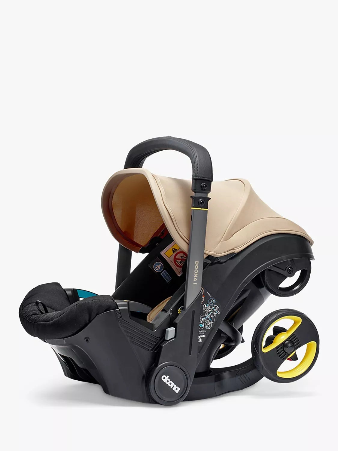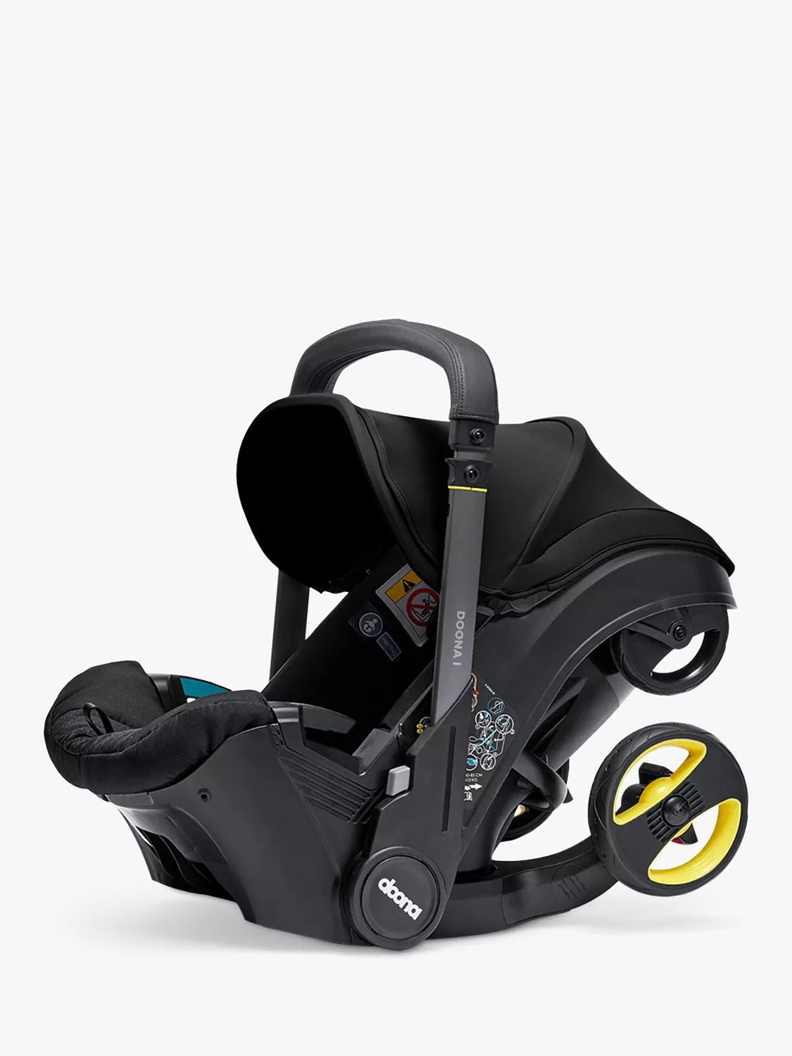 The car seat and stroller’s sleek design allows you to effortlessly get from A to B with your child, whether it's in your car, on public transport or strolling around the city. The high-durability wheels are designed for day-to-day strolls and maximise comfort for your little one, whilst the smooth faux leather handlebar cover and longer handle design ensure ease for parents too. Doona i also features rip-tape shoulder pads that connect to the bottom of the headrest making it easier to place your baby into the stroller.