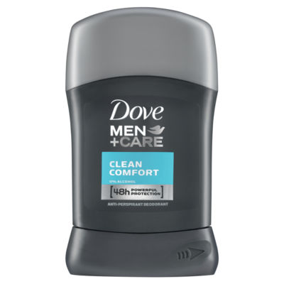Product InformationIf you’re looking for a long-lasting anti-perspirant deodorant for men, chances are fighting sweat and odour is your top priority. Dove Men+Care Clean Comfort Anti-perspirant Deodorant Stick is the answer, containing active ingredients that provide the strength you need to get tough with sweat and body odour for up to 48 hours. Its alcohol free, dermatologically tested formula is specially designed with ¼ moisturiser technology to shield your skin from irritation. Because Dove Men+Care celebrates a new definition of male strength – one with care at its centre – this stick deodorant is tough on odour, not on skin, and leaves a clean and subtle scent that will keep you feeling fresh for longer. Why not try it alongside Dove Men+Care Clean Comfort Body and Face Wash for lasting comfort and freshness? Dove Men+Care Clean Comfort Anti-perspirant Deodorant also comes in an aerosol 250/150 ml, perfect for your gym bag or luggage for when you are on the go. How to use: Before applying, ensure underarms are dry. Swipe Dove Men+Care Clean Comfort Anti-perspirant Deodorant Stick several times over your skin to dispense an even layer onto each underarm. Do not use on broken skin. Stop use if rash or irritation occurs.