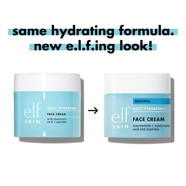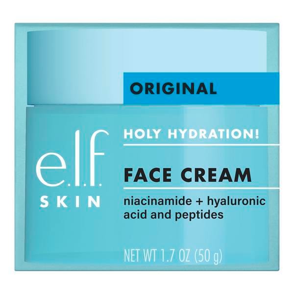 This lightweight e.l.f. SKIN Holy Hydration! Face Cream nourishes and plumps skin while delivering lasting hydration. It replenishes essential moisture, promoting a supple complexion ready for the day or night. This formula also works to brighten and even out skin tone with consistent use.