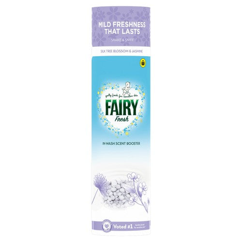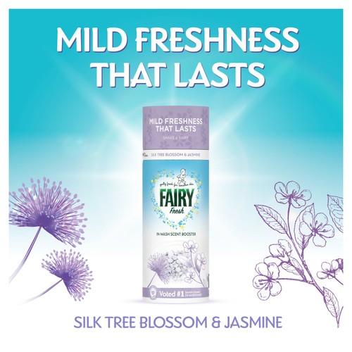 Fairy Non Bio in-wash scent boosters for mild freshness that lasts, The mild scent is inspired by the slightly honeyed, heliotrope feel of Silk Tree Blossom and the tender notes of Jasmine to enhance your mood in an uplifting & serene way, Fairy Non Bio was voted No. 1 laundry brand for sensitive skin (online panel of 7,413 adults) and was awarded the Skin Health Alliance seal of approval, The Silk Tree Blossom & Jasmine scent boosters are dermatologically tested and have 0% dyes, Try the Fairy Silk Tree Blossom & Jasmine Dream Team for Sensitive Skin. Use in combination with Fairy Fresh Silk Tree Blossom Platinum PODS and Fabric Conditioner for even more huggable softness and matching scent