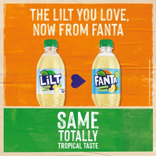 Lilt's New Look… Introducing Fanta Pineapple & Grapefruit. Same Totally Tropical Taste that you know and love but now part of the Fanta brand. Inspired by the flavours of the Caribbean, a sparkling soft drink that contains real pineapple and grapefruit juice for a ‘Totally Tropical Taste'.