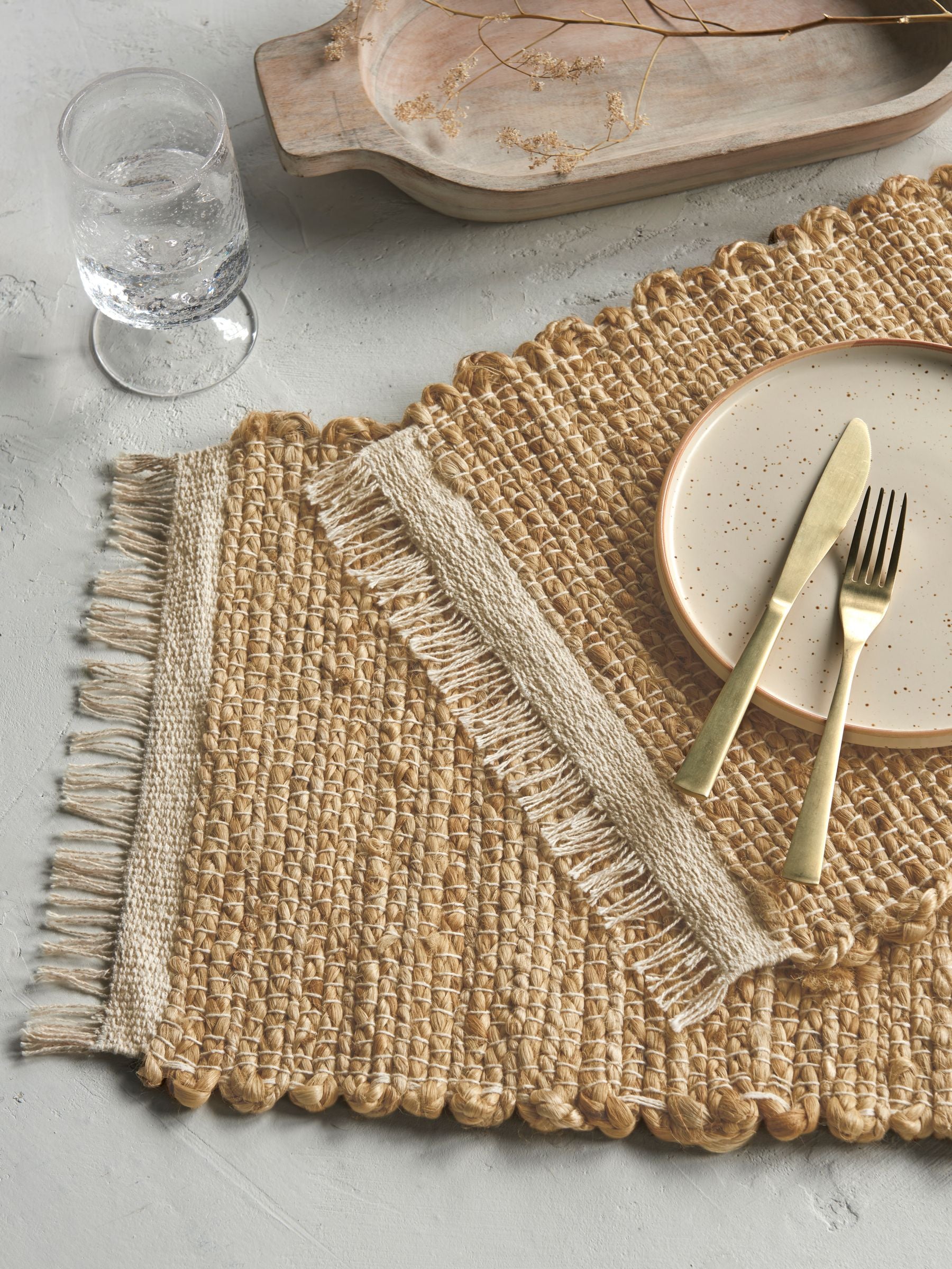 Decorate your dining set-up with the Watamu Placemats from French Connection. Crafted from jute string with decorative wooden beads weaved into the design and fringe trim around the edges, this set of 2 placemats adds a boho feel to your tablescape.