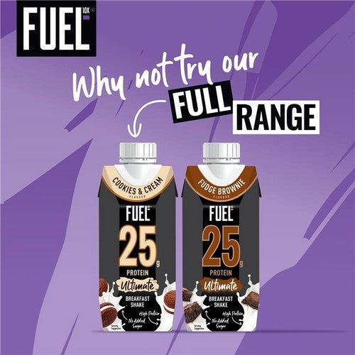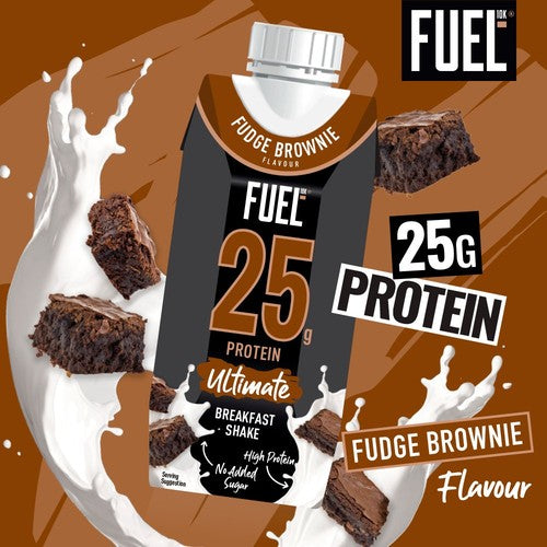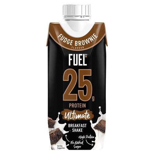 This smooth FUEL10K shake offers an indulgent Fudge Brownie flavour for your routine. This long-life, UHT-treated drink is designed to fuel busy mornings or serve as a convenient snack. It provides substantial nutritional support in an easily consumable liquid format.
