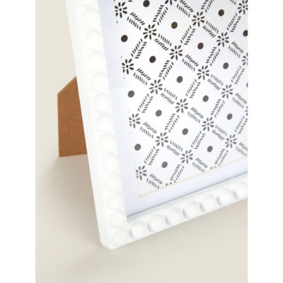 • White • 8 x 6 inch without mount & 7 x 5 inch with mount • 16.5 x 2 x 21.5 cm • Standing frame or mountable • Plastic, glass & MDF