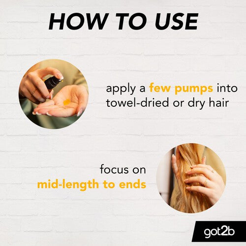 Make sleek, glossy hair a reality with got2b oil-licious tame & shine styling oil. This specialised formulation features Argan Oil, ensuring instant absorption across your hair strands. This product offers flexibility, allowing you to integrate it into various stages of your hair care routine.