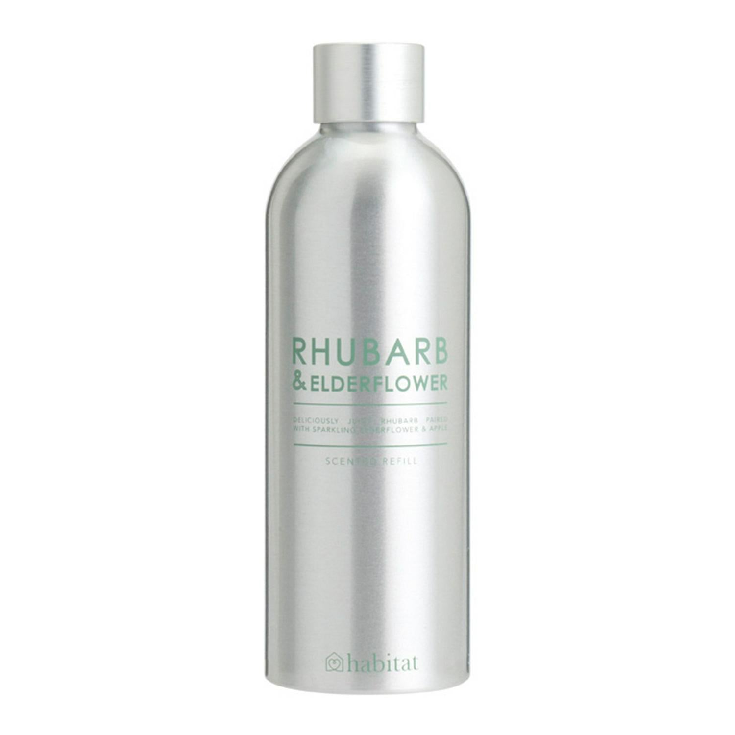 Top up your existing reed diffuser with this invigorating Habitat refill. It features a delightful fragrance blending the sweet character of elderflower with light, fruity rhubarb notes. This bottle contains 180ml of fragrance, allowing you to continue enjoying your chosen home scent for longer.