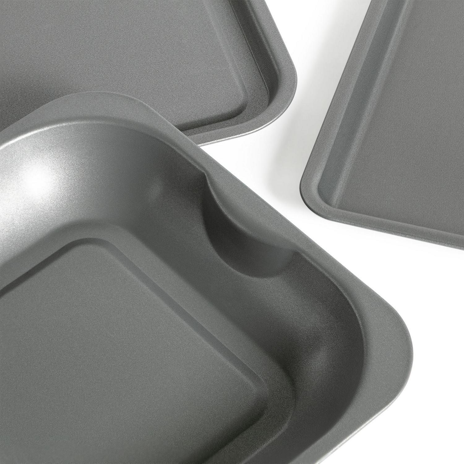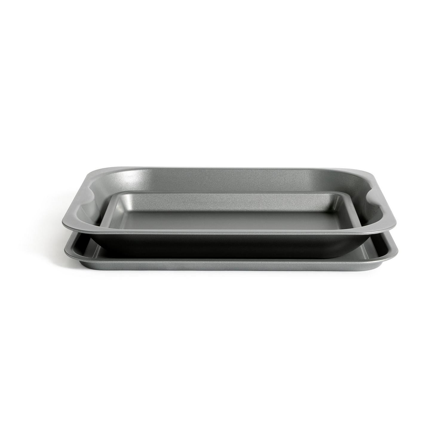 This versatile non stick bakeware set is ideal for tackling all your standard oven requirements efficiently.