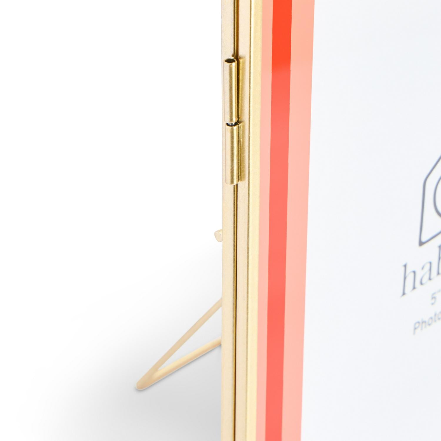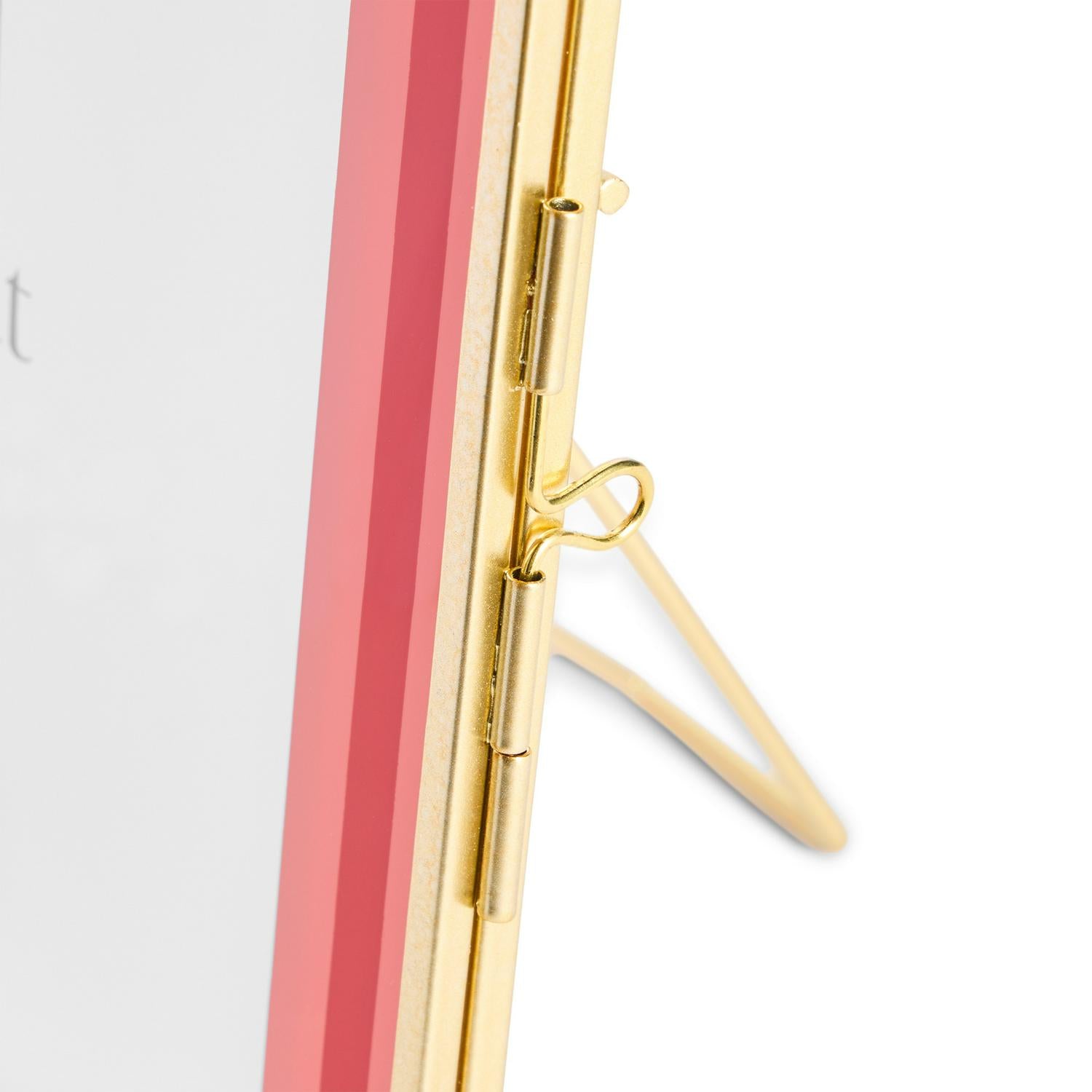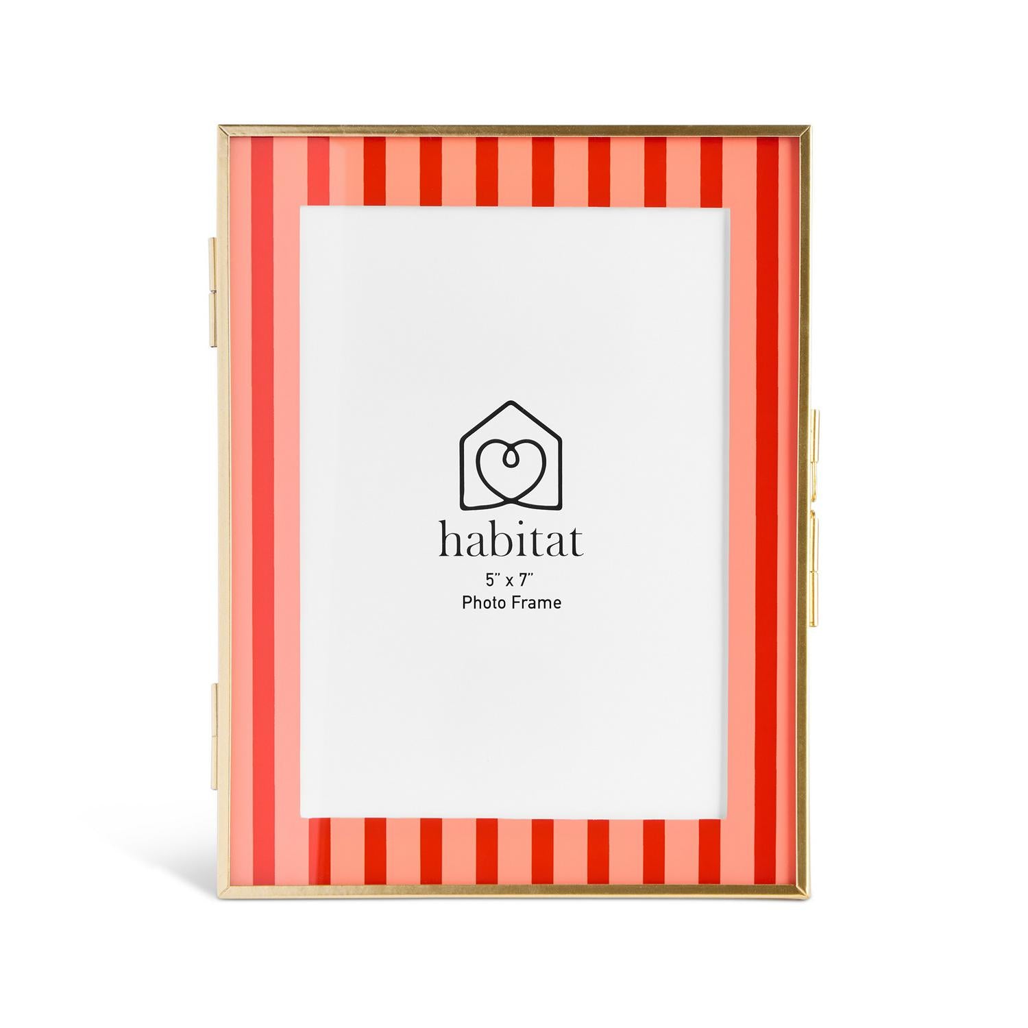 This Habitat frame provides a crisp, punchy aesthetic, pairing striking pink and red bands with a slim gold metal border. The intelligent side hinge opens easily like a book, simplifying the process of slotting in and securing your favourite picture. This versatile piece works equally well freestanding on a surface or installed on a wall.