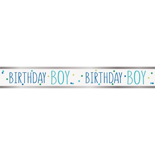 Prepare for a joyous occasion with this vibrant 9ft foil banner designed specifically for celebrating a birthday boy. This decoration instantly creates a festive atmosphere for any celebration space.