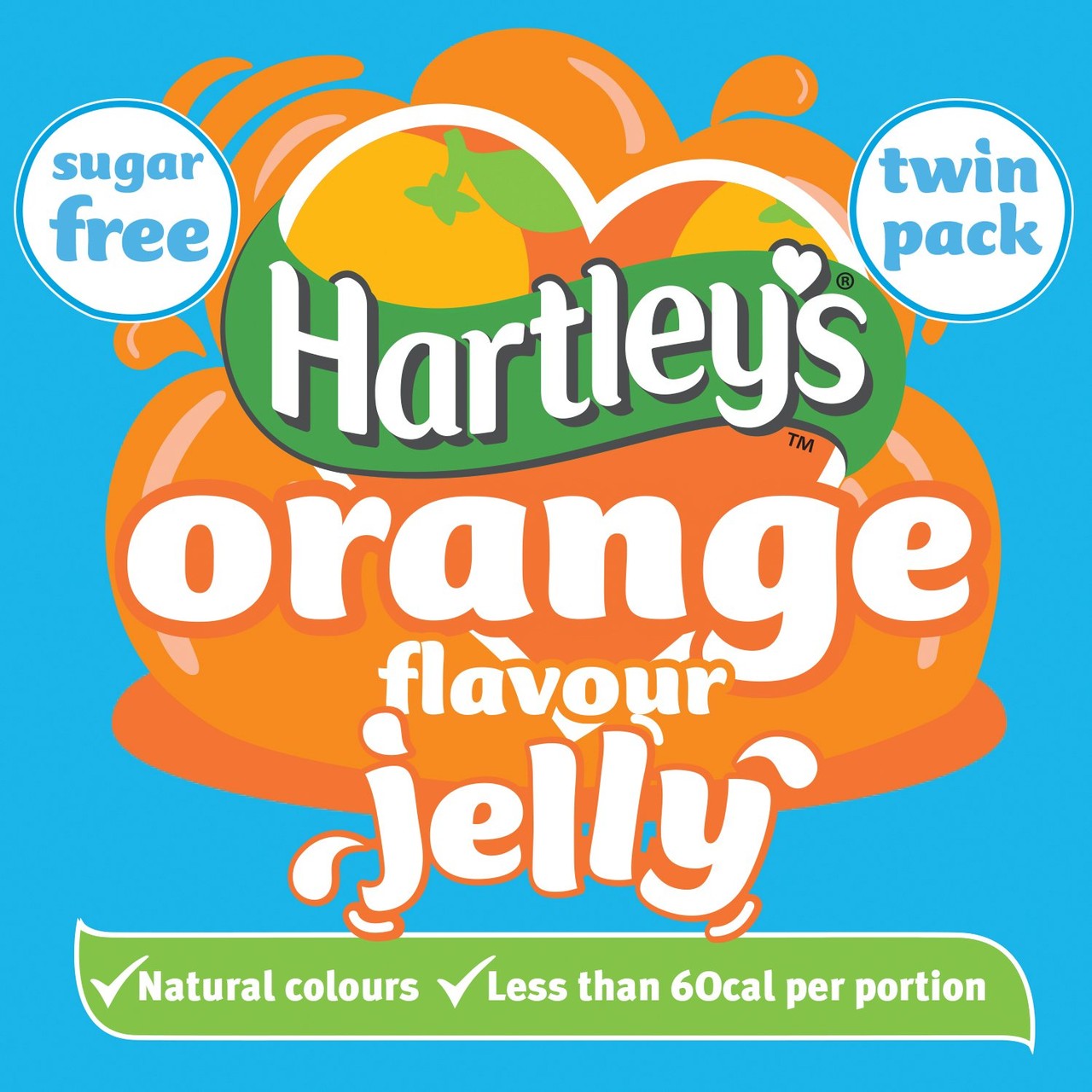 Orange flavour jelly crystals with sweeteners.