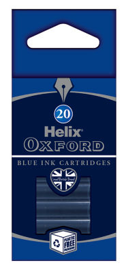 Helix Fountain Pen Ink Refills - 20 Blue Cartridges
