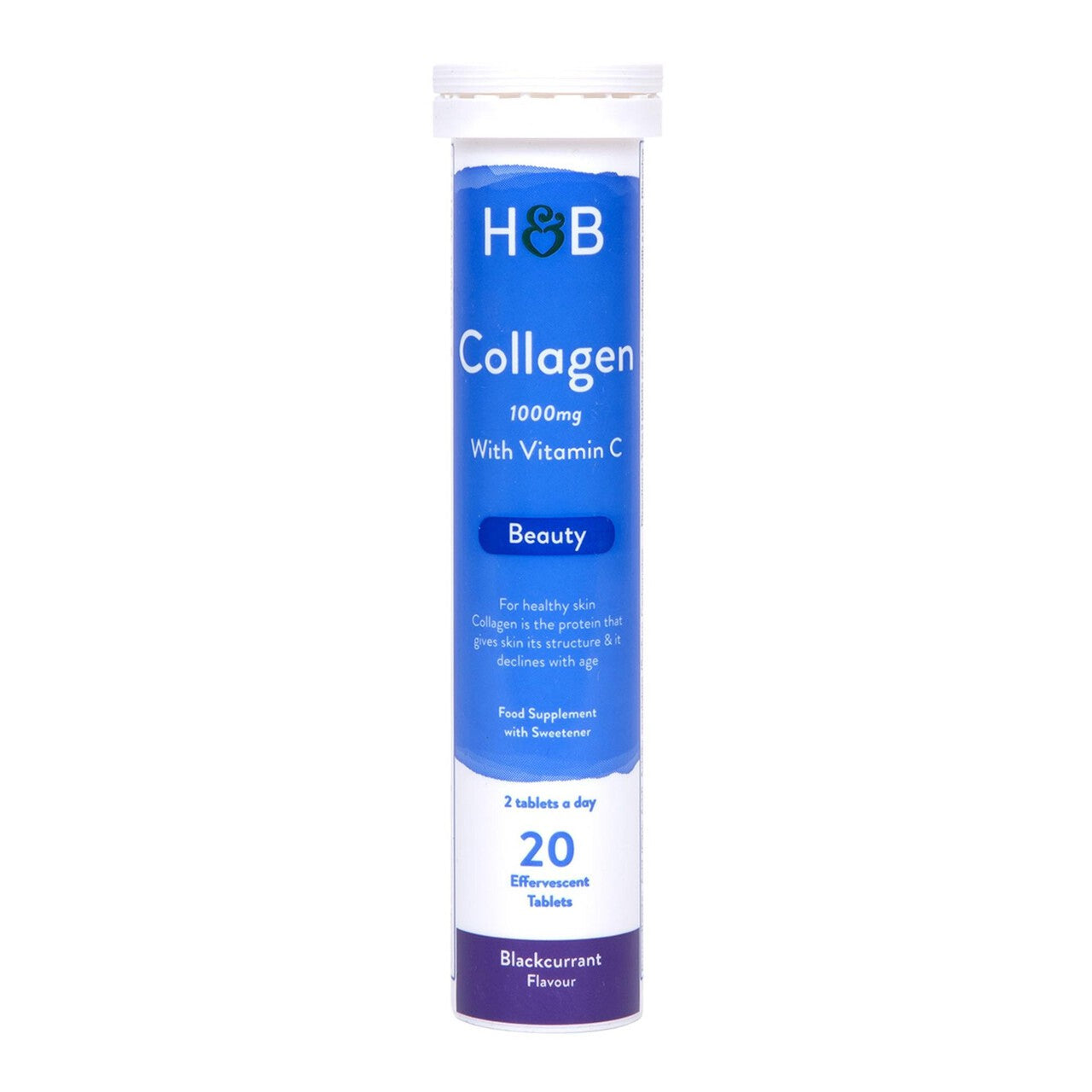 Holland & Barrett Bovine Collagen Effervescent tablets offer a convenient way to integrate collagen into your daily routine. These tablets dissolve easily in water, creating a pleasant blackcurrant flavoured drink. This product combines bovine collagen with essential supporting nutrients for comprehensive dietary support.