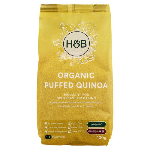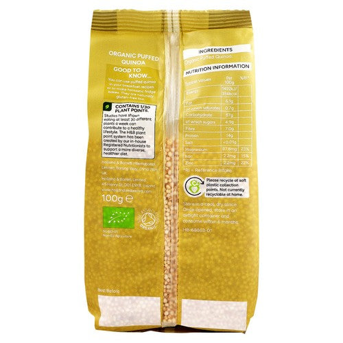 This organic puffed quinoa is a versatile cupboard staple offering a light and crispy texture for various culinary applications. It is naturally low in saturated fat and provides a source of protein and important minerals for your diet.