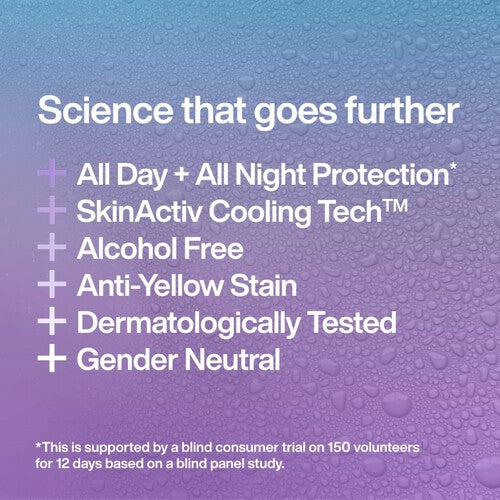 Contains SkinActiv Cooling Tech™ a plant-powered fusion that helps keep you cool under pressure, combatting odor and sweat for all-day + night freshness + protection.