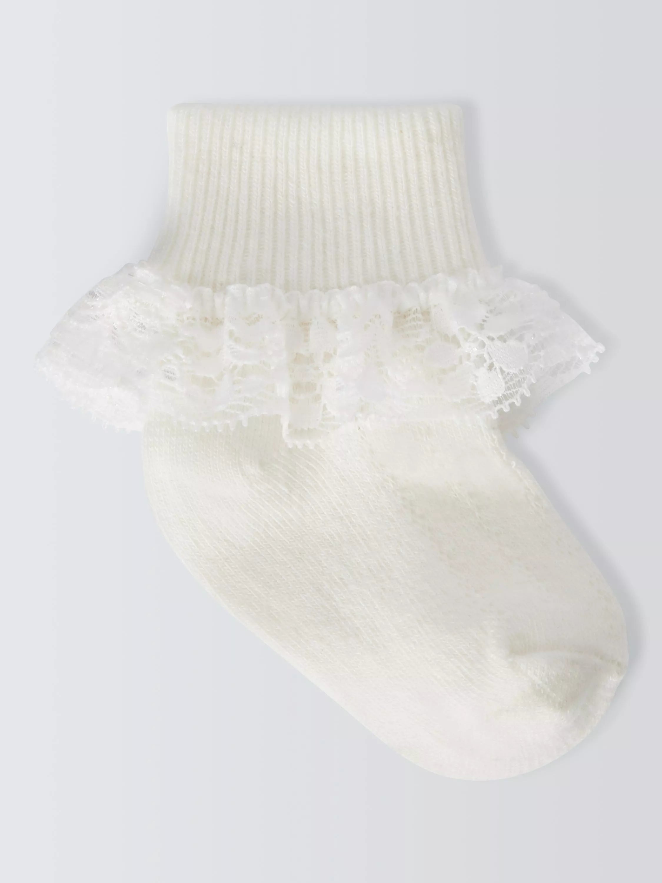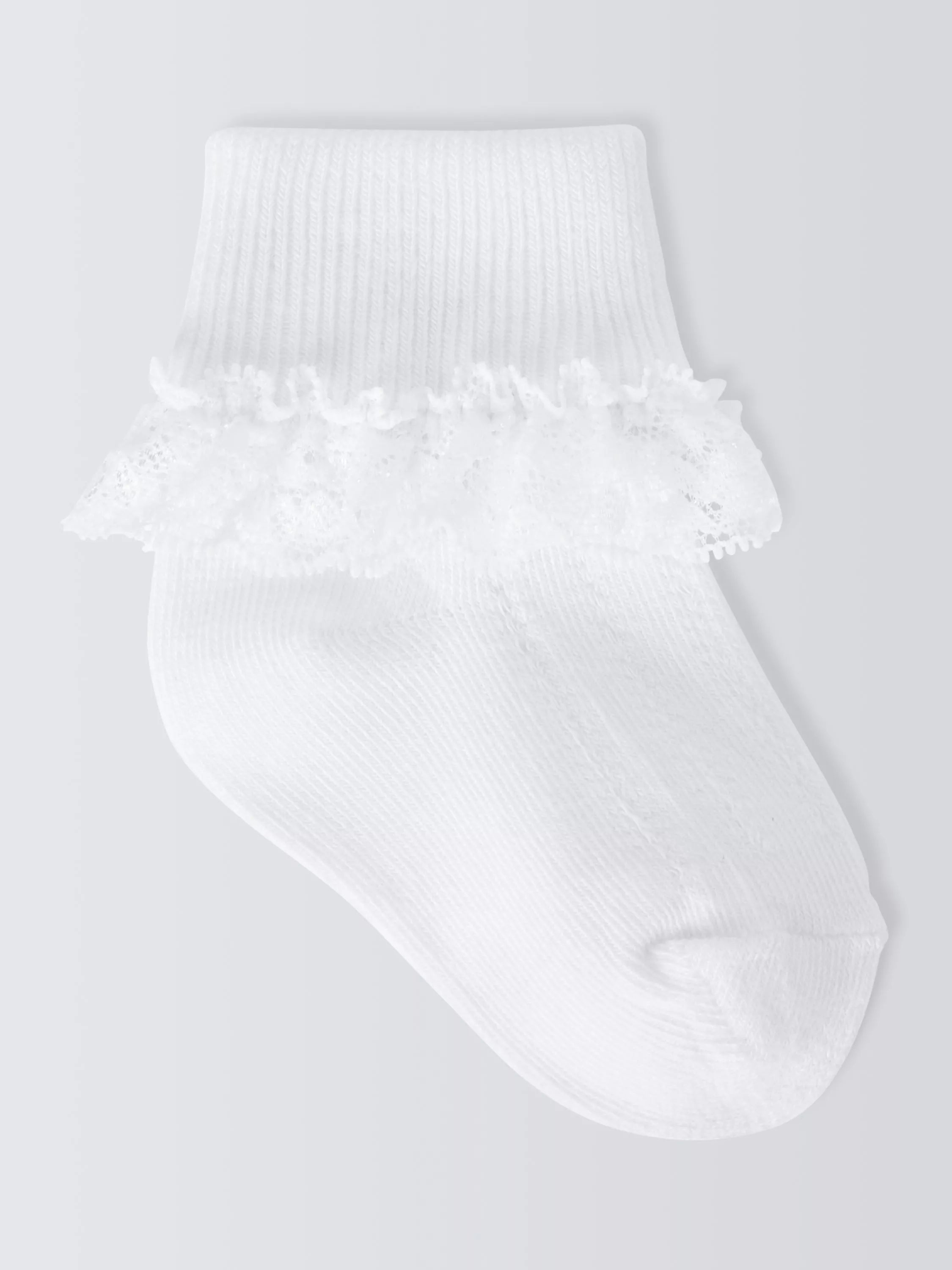 Keep baby's tootsies looking cute with this pack of three lace foldover socks from us. Made from a soft cotton blend with pretty scalloped lace edging, they're machine washable for easy laundering.