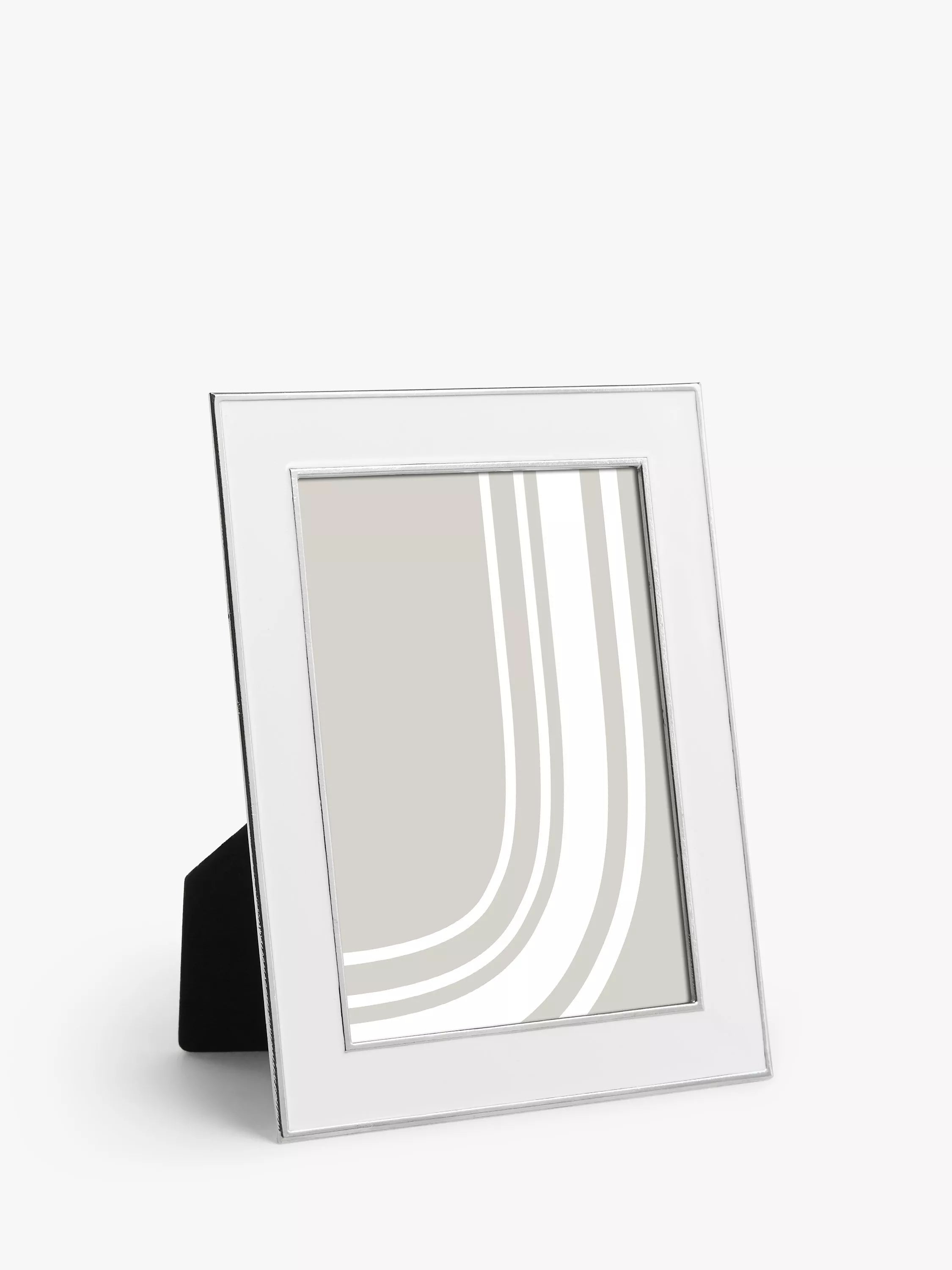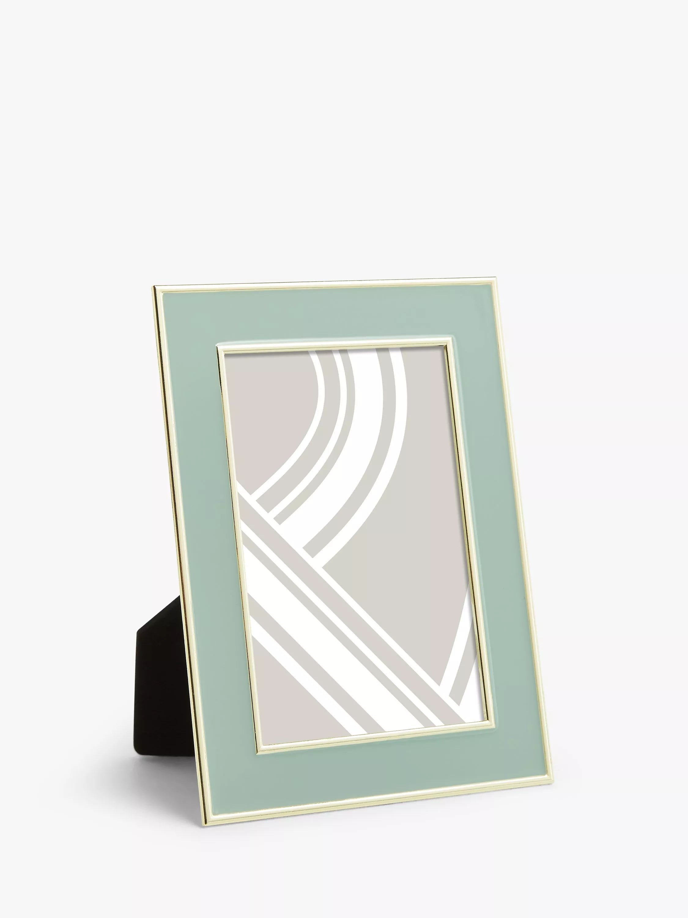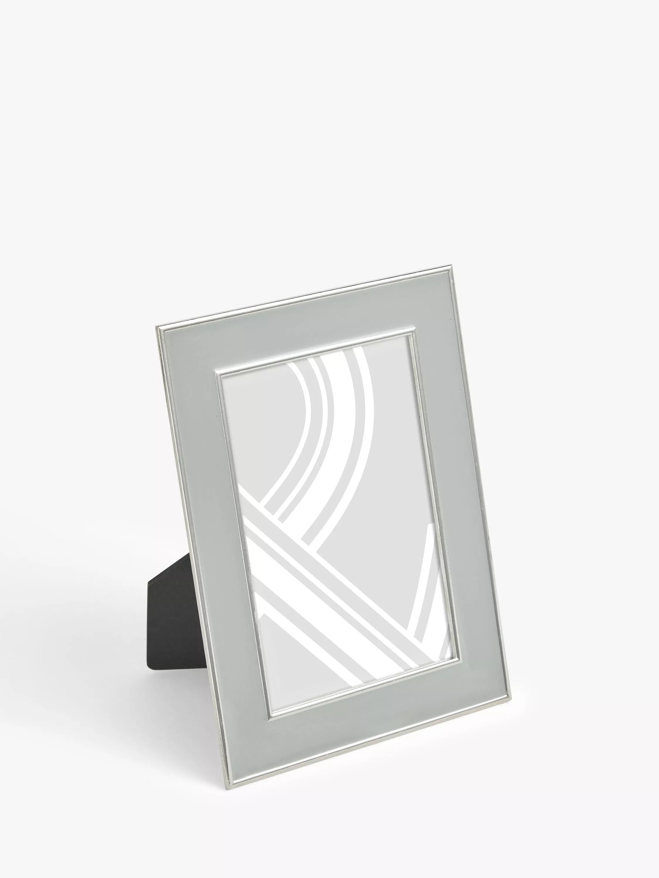 A stylish photo frame with a lacquered enamel surround and metallic edging. Made with a plastic backing, it can be displayed freestanding, vertically or horizontally.