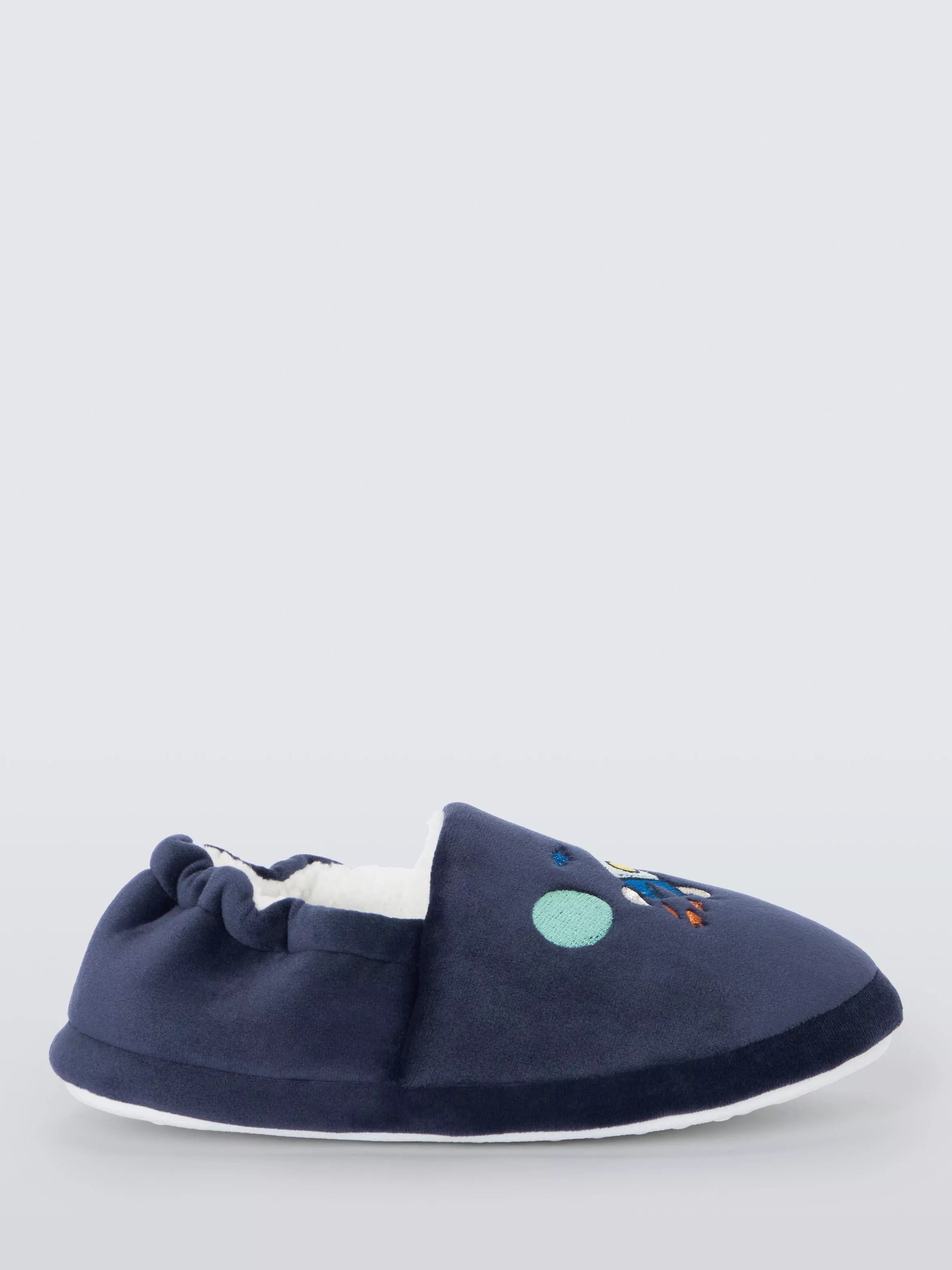 Blast off into comfort with our space-themed slippers. Adorned with a rocket ship, stars and planets, these cosy slippers make every step feel like an adventure. Soft, warm, and durable, they're perfect for little astronauts dreaming of exploring the galaxy.