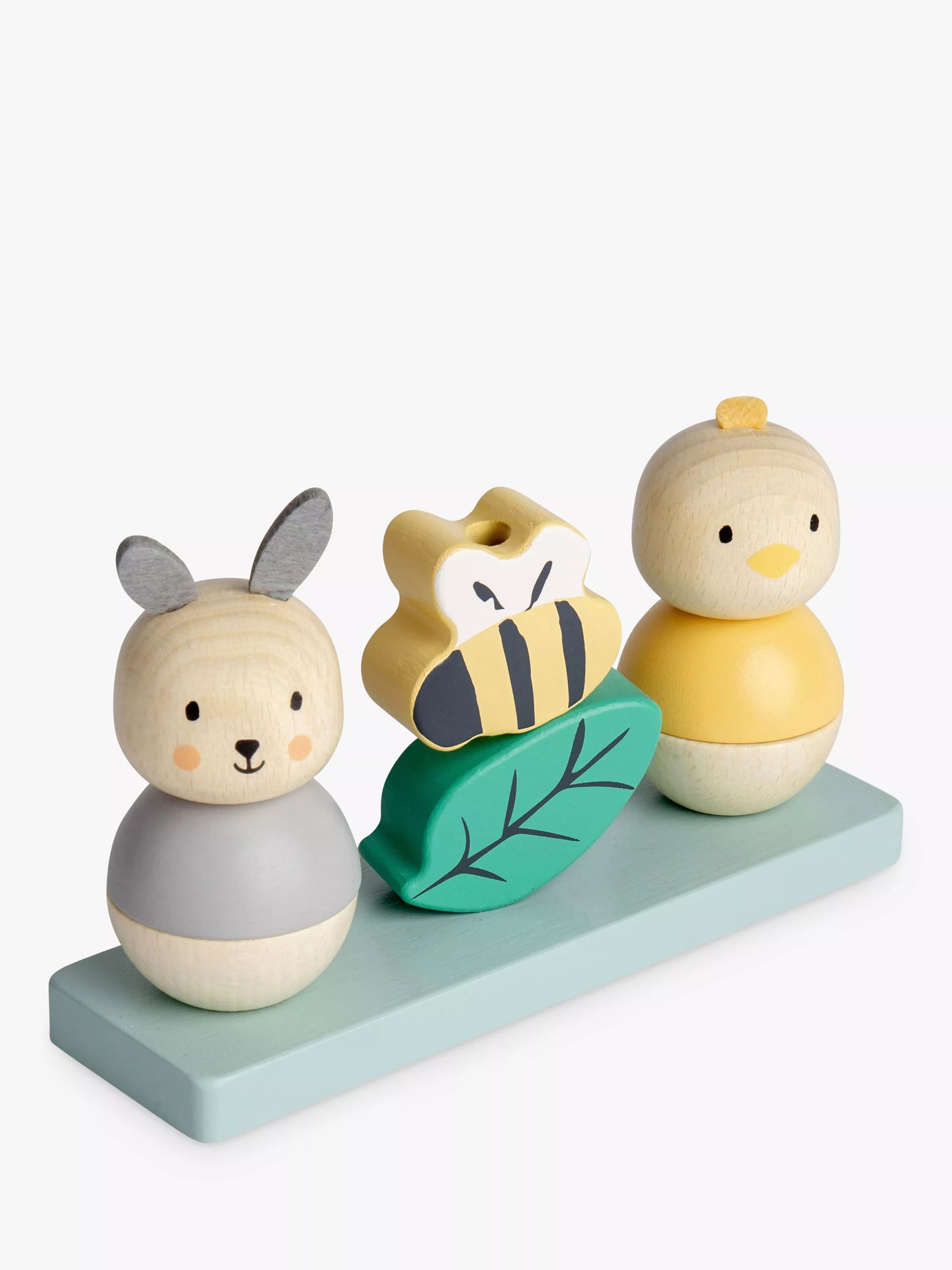 • Stackable animals and objects: Bunny, chick, leaf, and bumble bee for endless playtime fun.