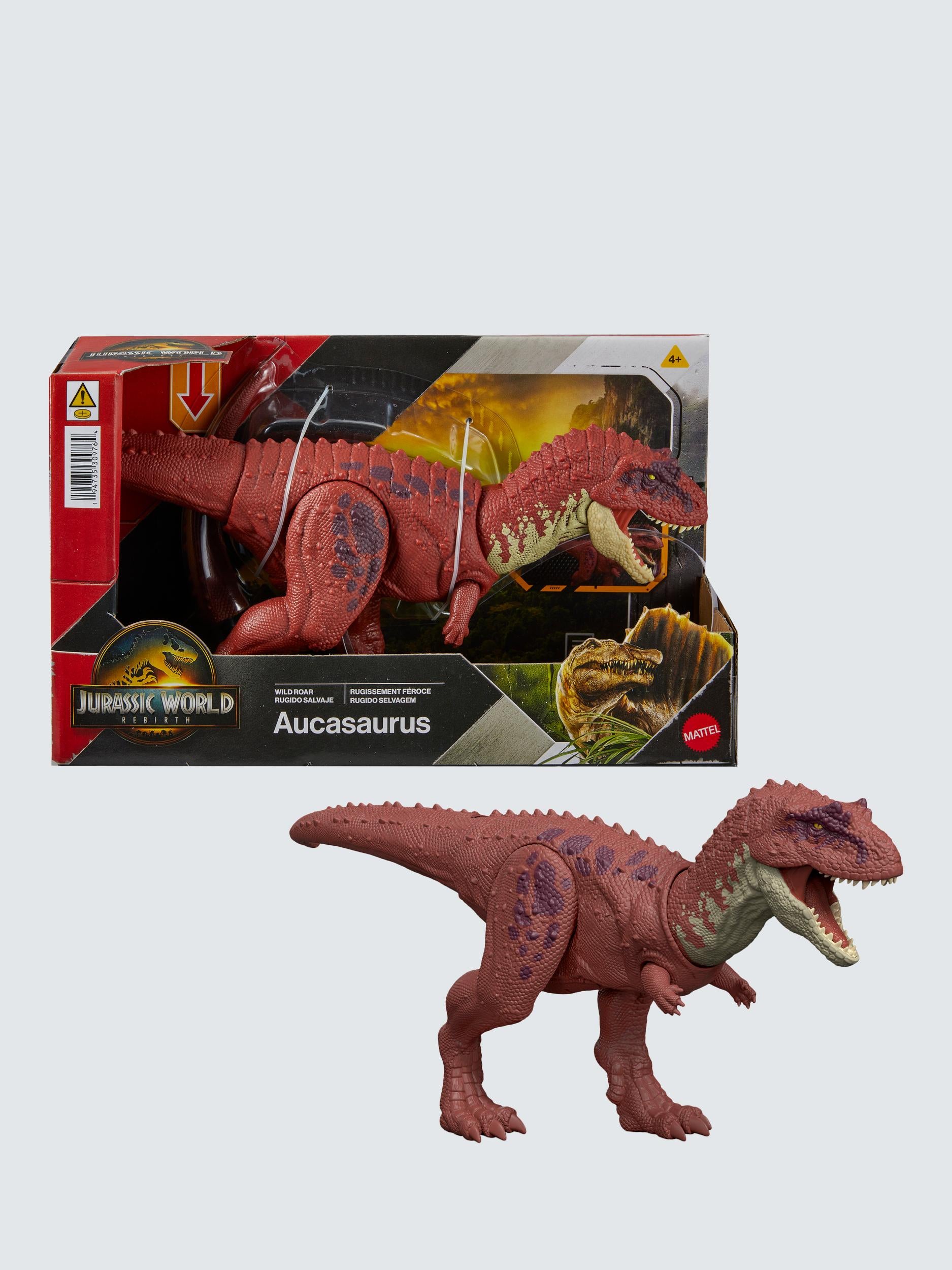 Reviews Get roaring and ferocious with this Wild Roar Aucasaurus inspired by Jurassic World Rebirth. It's a Total Attack when kids move the tail up and down on this dinosaur toy to activate a vicious chomp action, accompanied by a savage roar. Then twist the tail to change the direction of the attack!